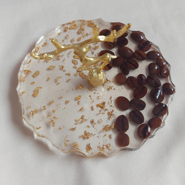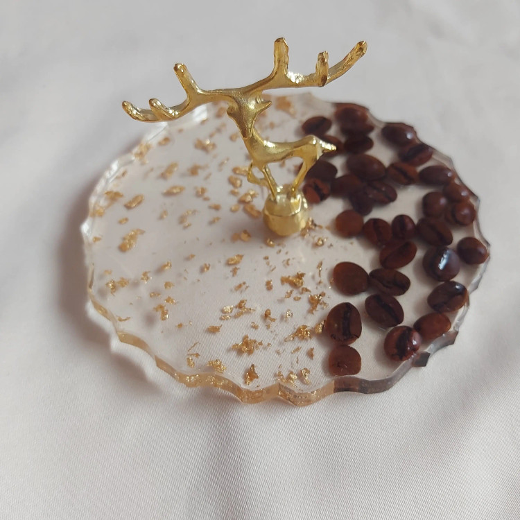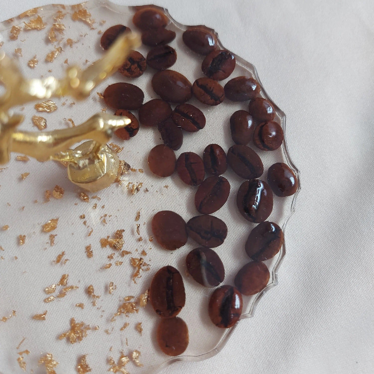 استند جواهرات و اکسسوری و دکوری تمام رزین استفاده شده از دانه های قهوه طبیعی و ورق طلا هدیه و کادویی مناسب